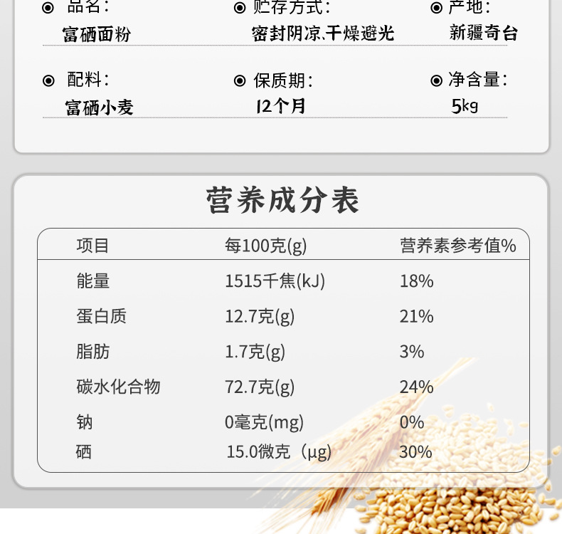 本网页所展示的有关【腰站子 新疆奇台富硒面粉中强筋烘焙面食欧包吐司馒头饺子小麦粉_土特产_新疆幸福疆来食品科技有限公司】的信息/图片/参数等由新疆旅游商城的会员【新疆幸福疆来食品科技有限公司】提供,由新疆旅游商城会员【新疆幸福疆来食品科技有限公司】自行对信息/图片/参数等的真实性、准确性和合法性负责,本平台(本网站)仅提供展示服务,请谨慎交易,因交易而产生的法律关系及法律纠纷由您自行协商解决,本平台(本网站)对此不承担任何责任。您在本网页可以浏览【腰站子 新疆奇台富硒面粉中强筋烘焙面食欧包吐司馒头饺子小麦粉_土特产_新疆幸福疆来食品科技有限公司】有关的信息/图片/价格等及提供【腰站子 新疆奇台富硒面粉中强筋烘焙面食欧包吐司馒头饺子小麦粉_土特产_新疆幸福疆来食品科技有限公司】的商家公司简介、联系方式等信息。
