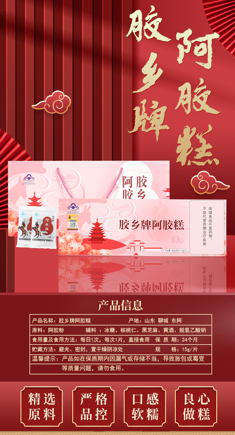 胶乡牌阿胶糕东阿产地驴皮即食阿胶糕礼盒装健字号450克厂家直供