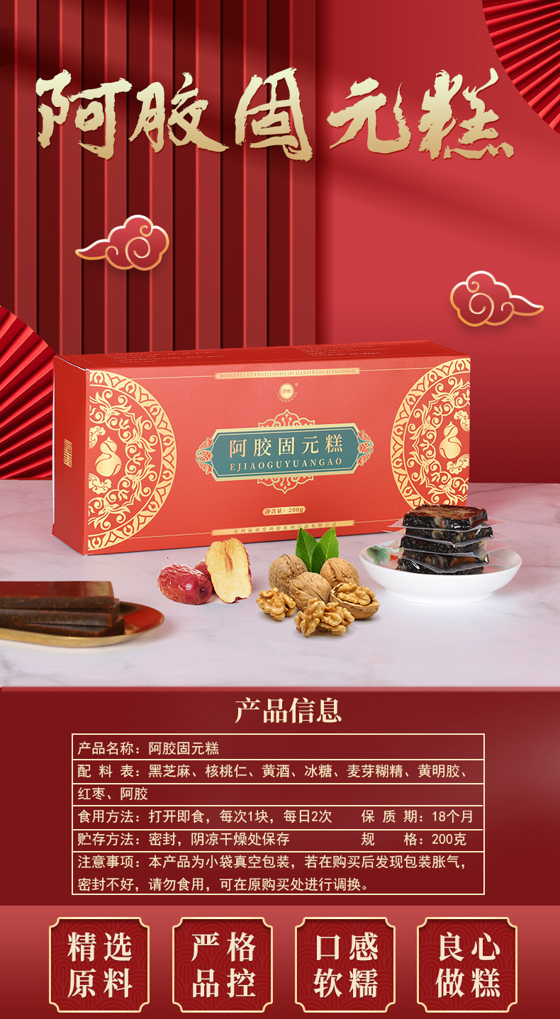 胶乡阿胶固元糕 阿胶膏即食阿胶片块东阿原产真驴皮200g厂家批发