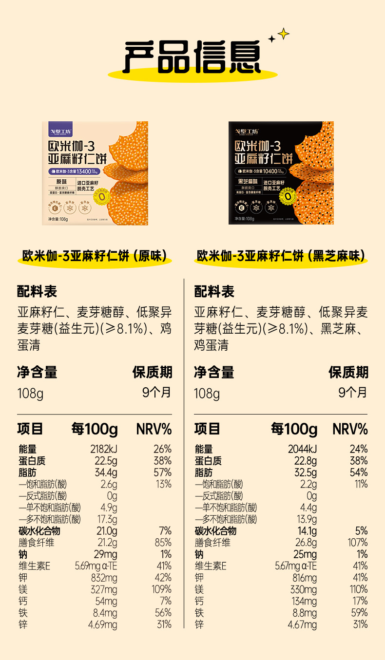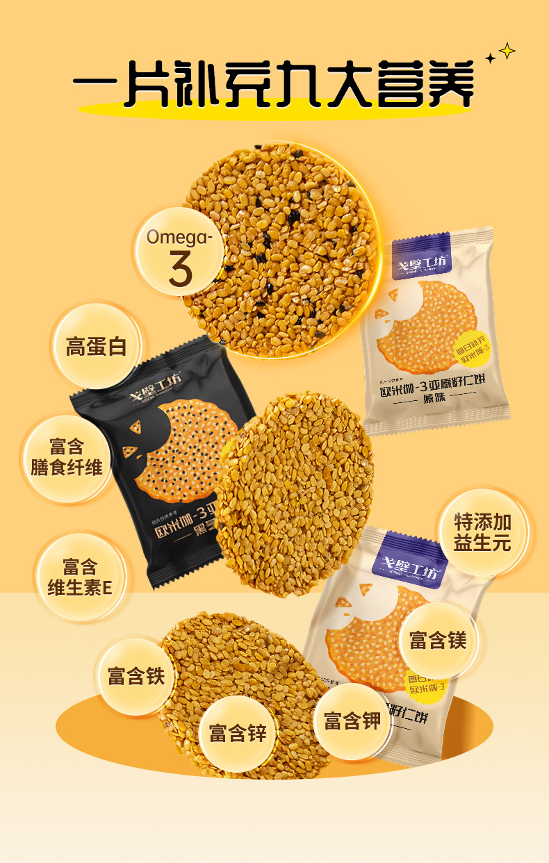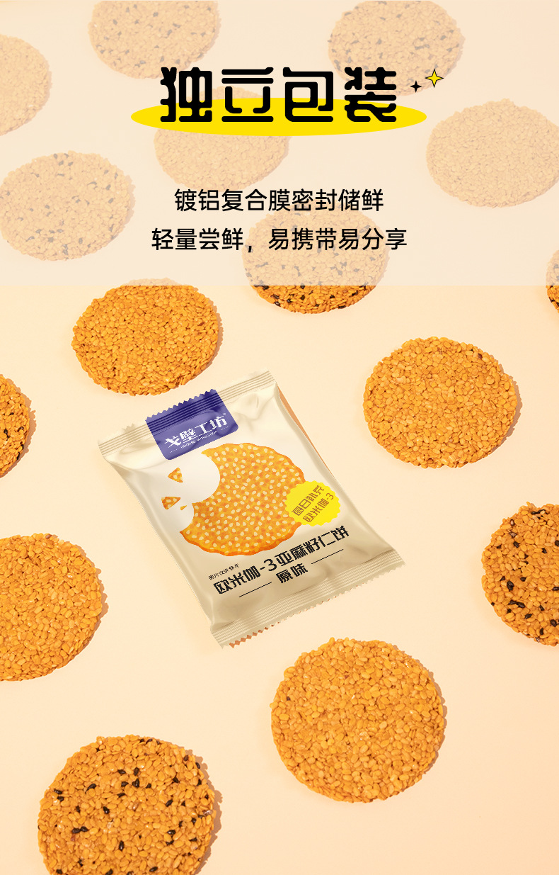 原创 亚麻籽仁饼干休闲食品代餐饱腹办公室零食独立包装整箱批发