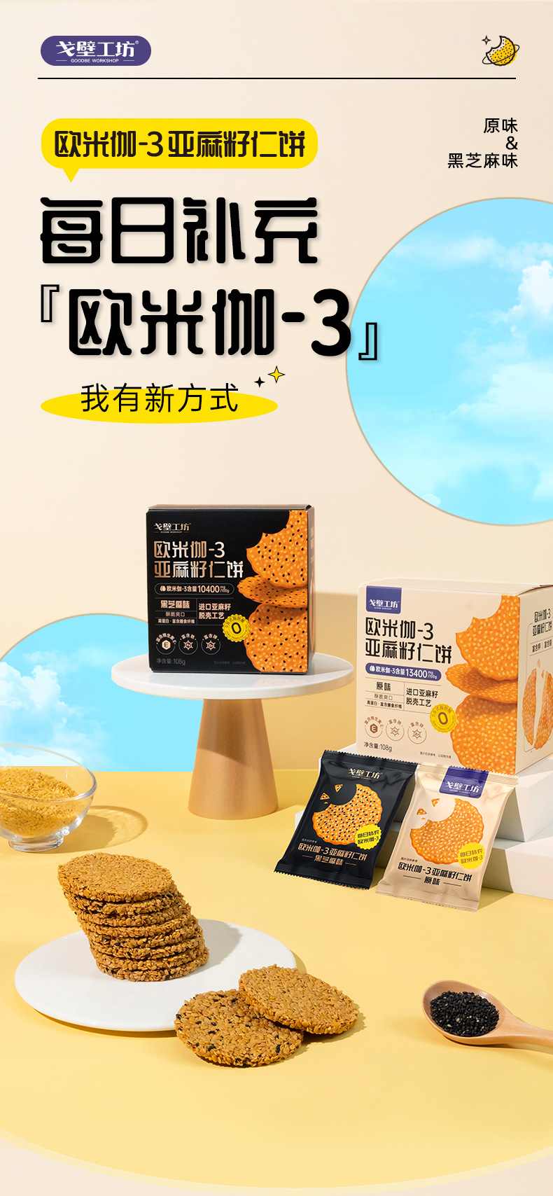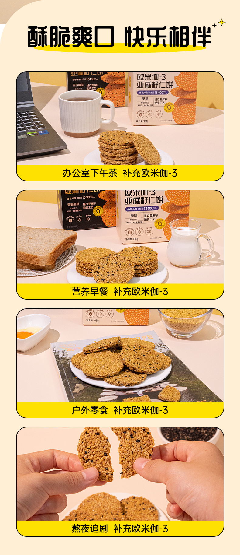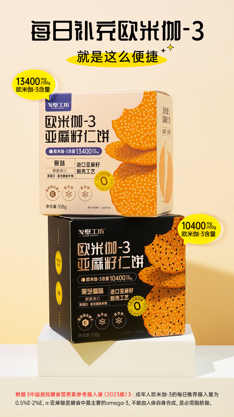 原创 亚麻籽仁饼干休闲食品代餐饱腹办公室零食独立包装整箱批发